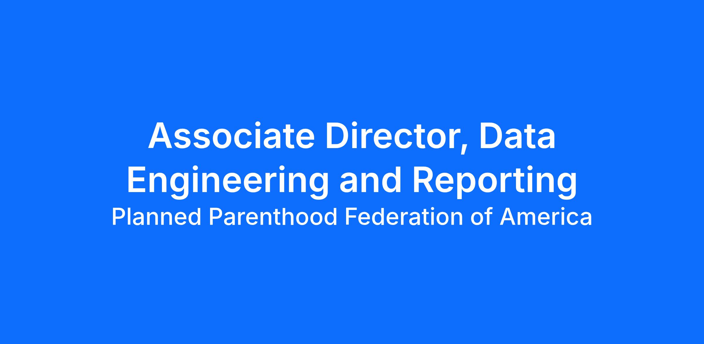 Planned Parenthood Federation of America (PPFA) and Planned Parenthood Action Fund (Action Fund)seek a dynamic and collaborative Associate Director of Data Engineering and Reporting. This job reports to the Senior Director of Data, Analytics, and Research in the Research and Policy department. The Research & Insights team provides strategic, data-driven guidance to the External Affairs division and supports the critical work of the national and local Planned Parenthood organizations to conduct equitable, efficient, and effective campaigns.