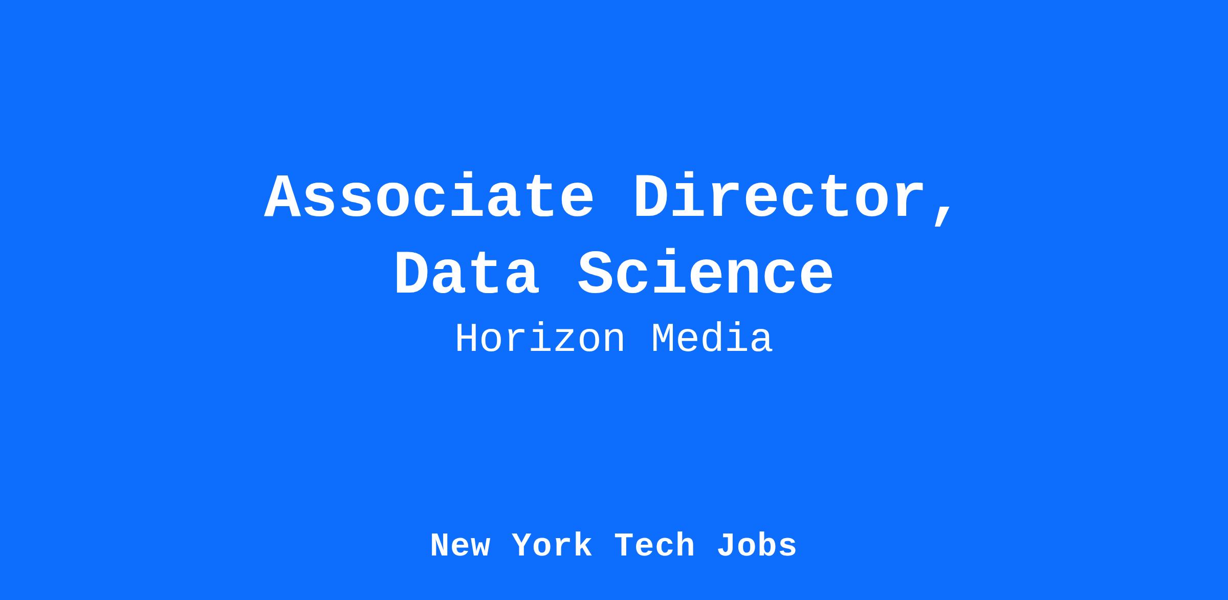 Horizon Media is proud to be an equal opportunity workplace. We are committed to equal employment opportunity regardless of race, color, ancestry, religion, sex, national origin, sexual orientation, age, citizenship, marital status, disability, gender identity or Veteran status. We also consider qualified applicants regardless of criminal histories, consistent with legal requirements.