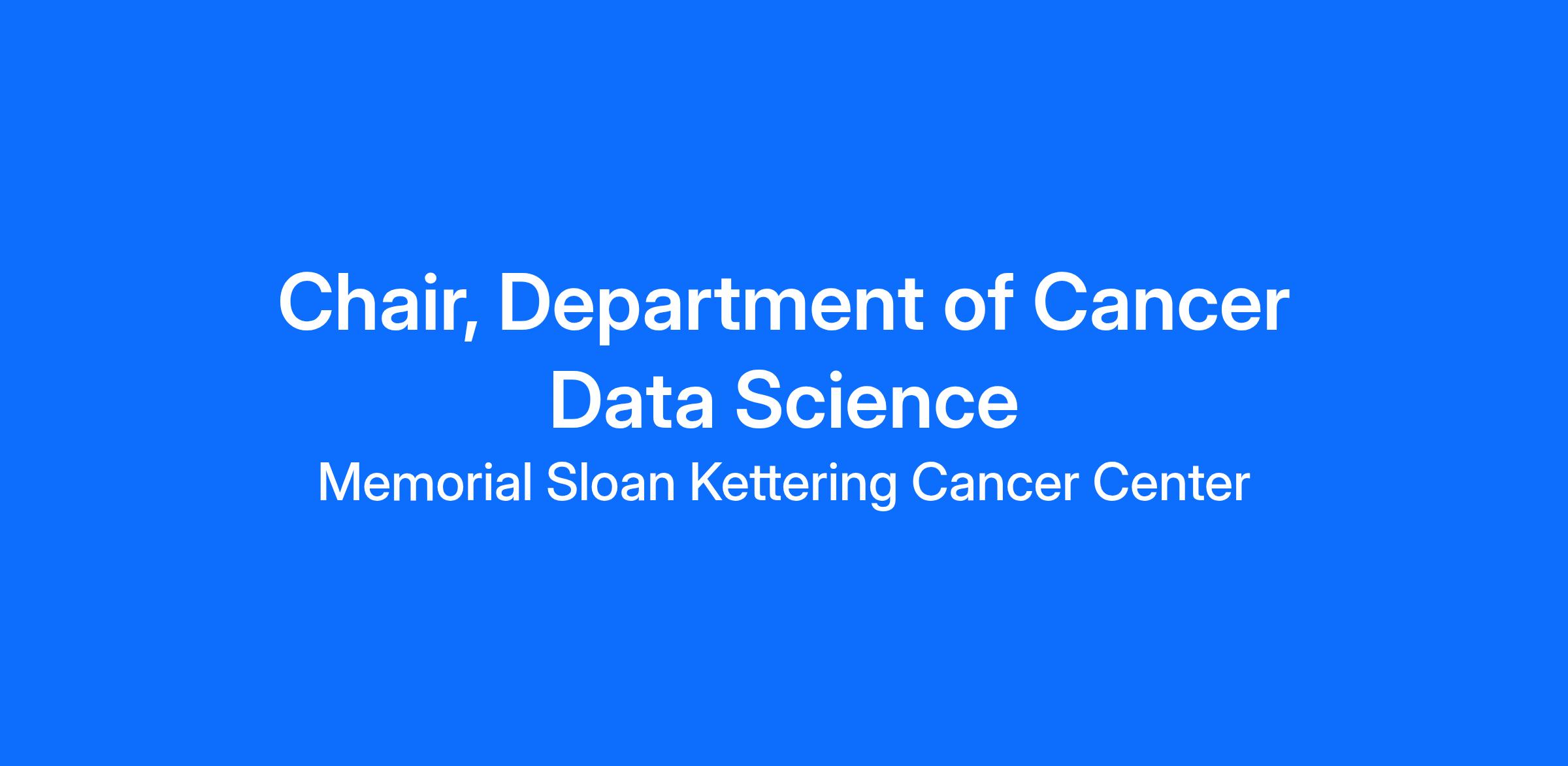 Exciting Opportunity at MSK: Chair, Department of Cancer Data Science