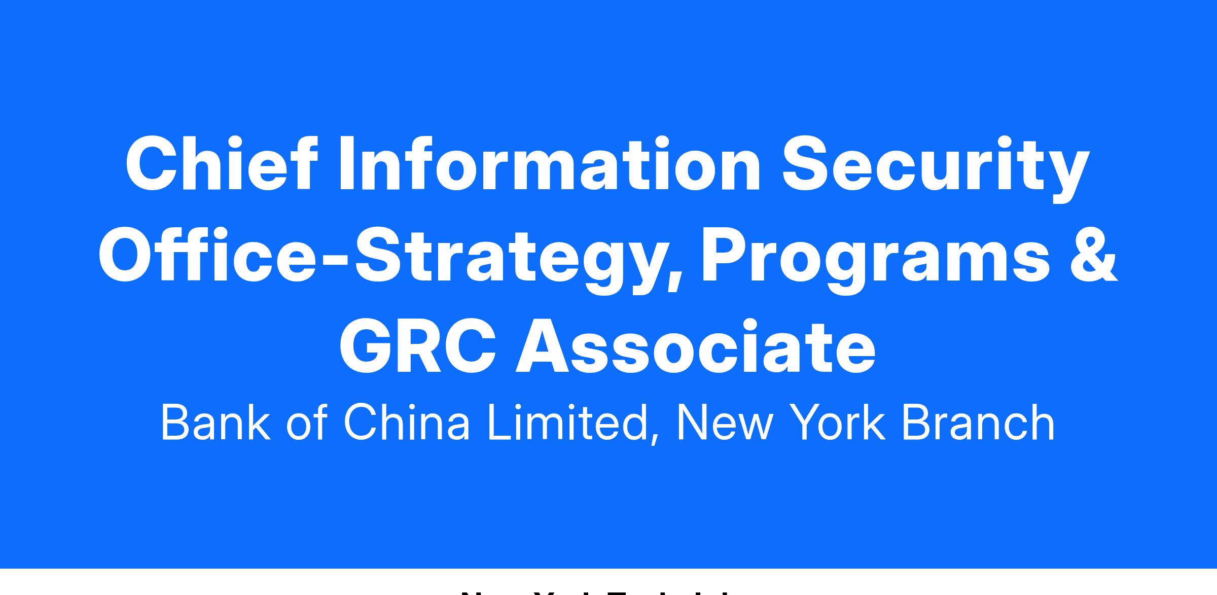 This incumbent will provide Strategy, Programs, Governance, Risk and Compliance functions as required to fulfill BOCNY information security program requirements. This incumbent will provide Strategy Coordination, CISO Projects Management, Training & Culture, Metrics & Reporting, Governance, Risk Assessments and Compliance, Data Privacy functions as detailed below.