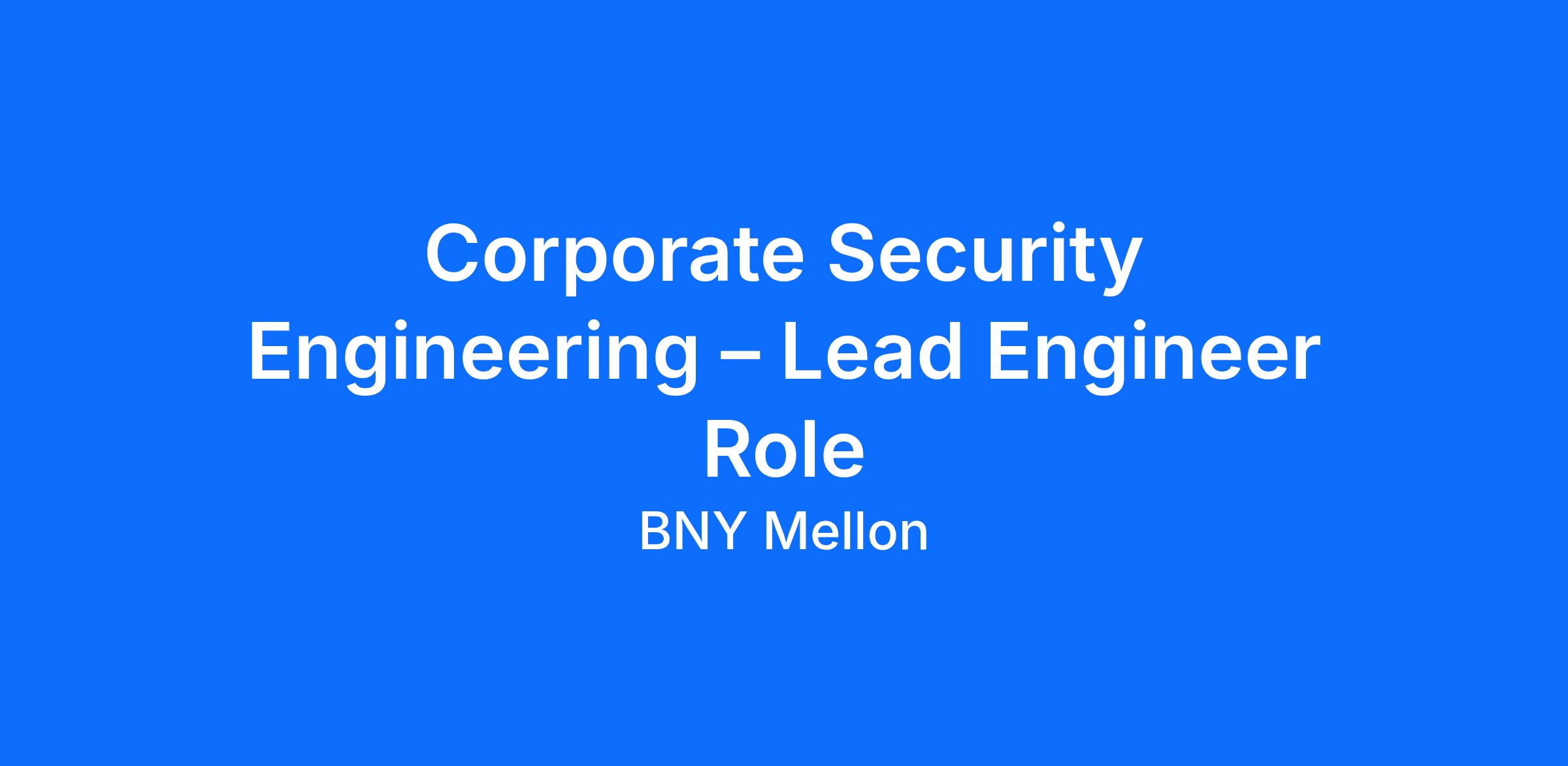 DescriptionCorporate Security Engineering – Lead Engineer Role