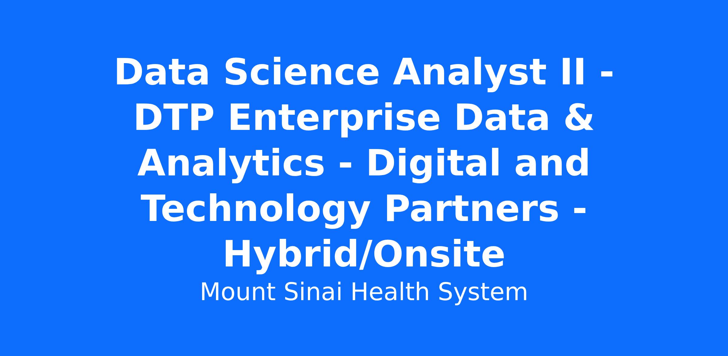 Non-Bargaining Unit, 223 - DTP Enterprise Data & Analytics - MSH, Mount Sinai Hospital