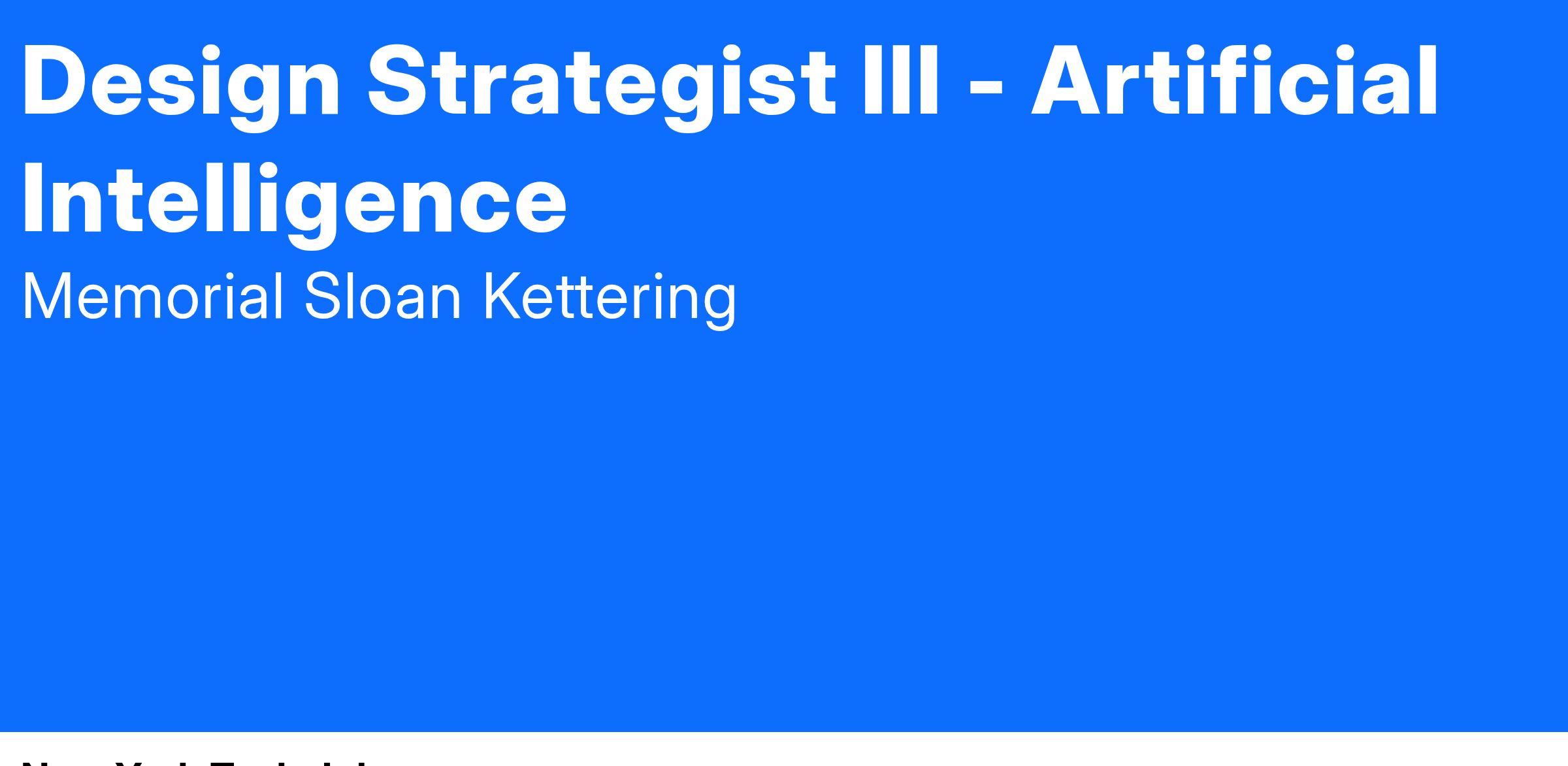 Exciting Opportunity at MSK: Design Strategist III - Artificial Intelligence