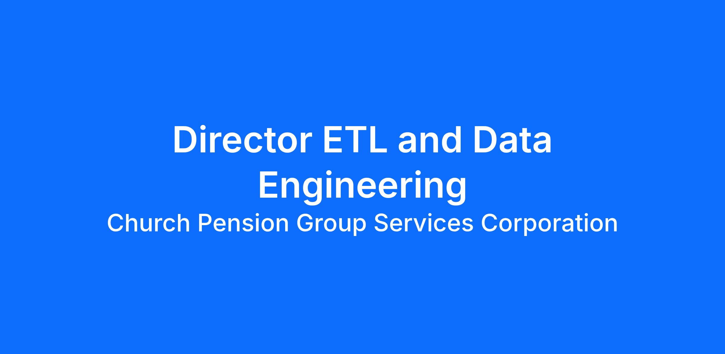 The Director of ETL and Data Engineering leads a team of software engineers in designing, building, and maintaining enterprise data integration solutions, ETL pipelines, and data platforms across The Church Pension Group's business and corporate units. This role ensures data integrity, consistency, and availability across systems while supporting business process automation, integration, and analytics. The role ensures data quality, security, and operational excellence, collaborating closely with stakeholders to develop consistent data processes and technical solutions. The Director provides hands-on technical leadership and drives adoption of modern data engineering and software development practices.