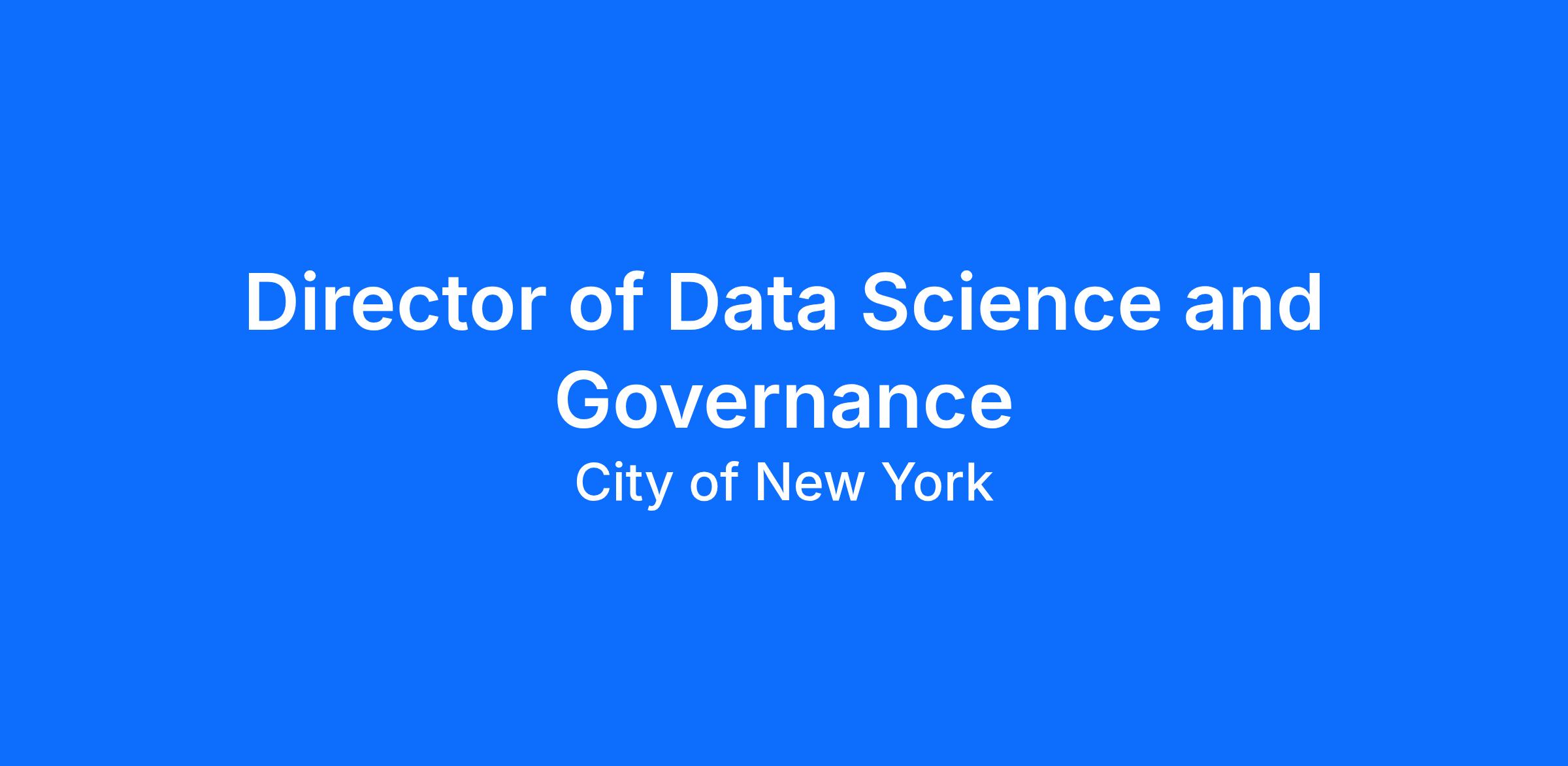 The Analytics, Performance & Management Unit (APM) within the Executive Division at the New York City Department of Transportation seeks to hire a Director of Data Science and Governance. Reporting to the Assistant Commissioner of APM, this role will lead the agency’s data science and advanced analytics portfolio while standing up and operationalizing a comprehensive data governance framework, aimed at increasing data discoverability, accessibility, quality, traceability and security.