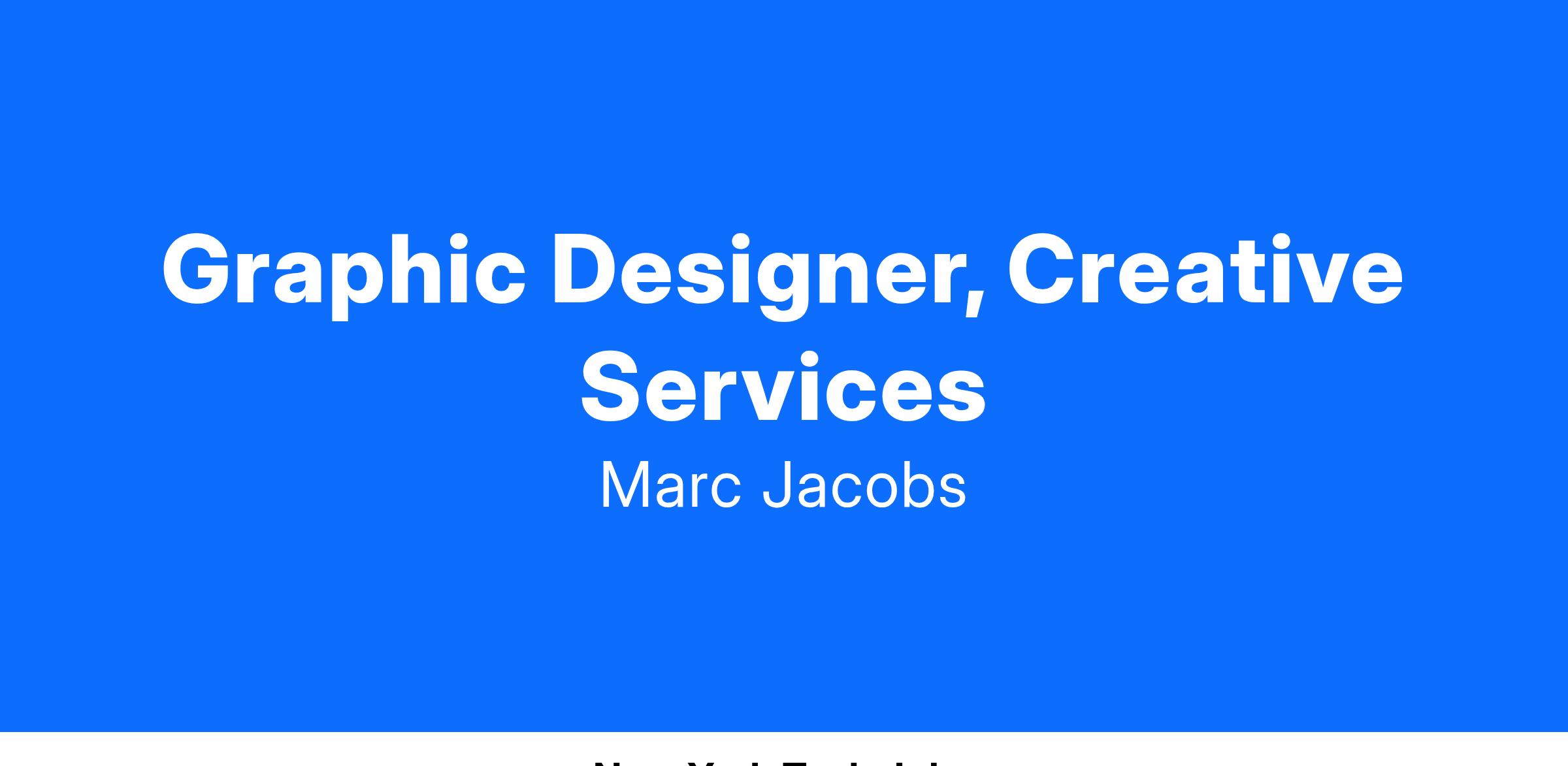 OVERVIEW: Marc Jacobs International, powered by the creative genius of Marc Jacobs, seeks a Graphic Designer to join the Creative Services teambased in its New York City (SoHo) headquarters.