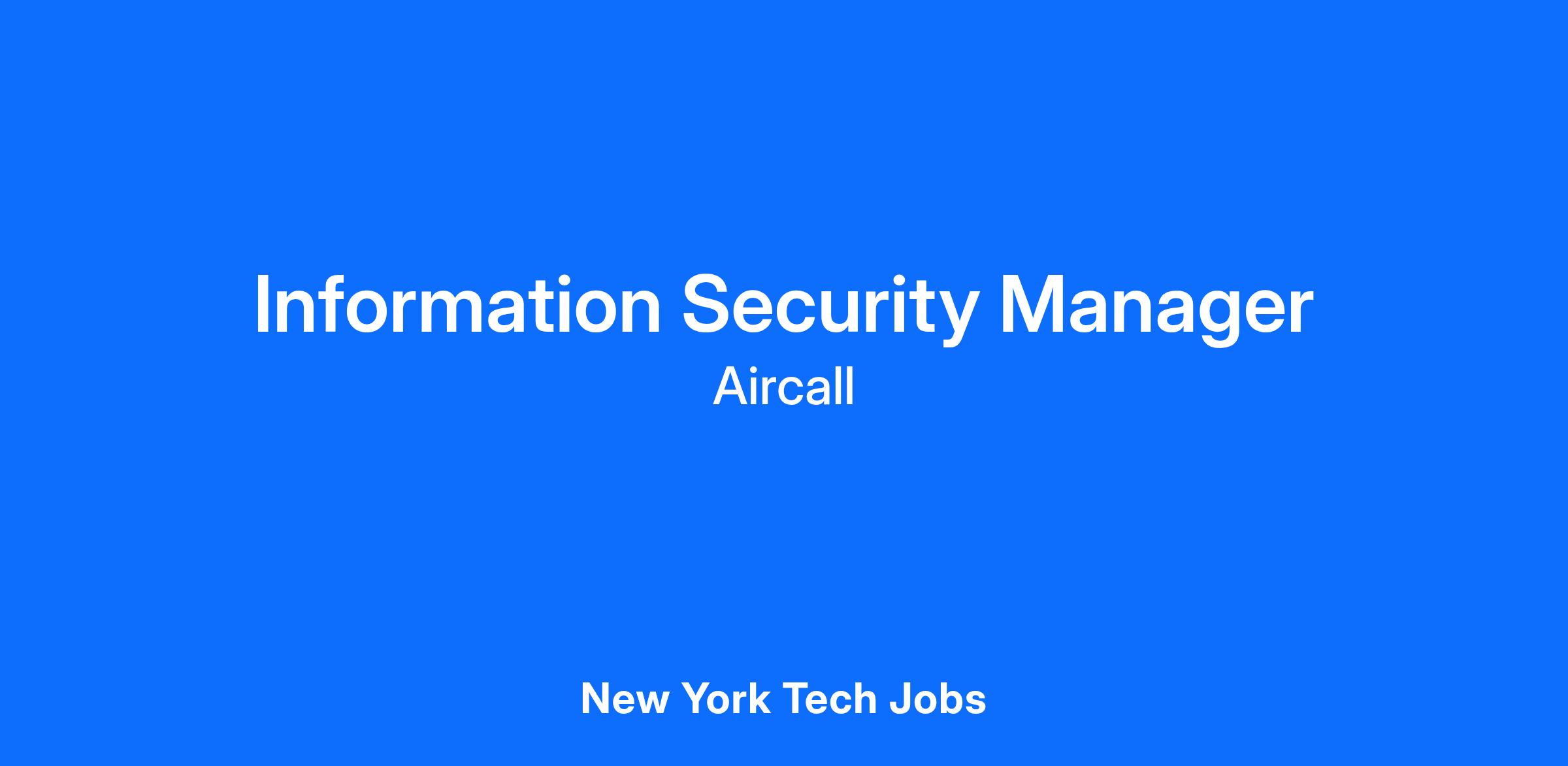 Aircall is seeking an experienced Information Security Manager to take ownership of Aircall’s information security strategy, governance, and risk management practices. This person will serve as the central coordinating and orchestrating function for all branches of Information Security, ensuring that our security, IT, privacy and product teams are aligned, accountable, and operating against a unified framework.