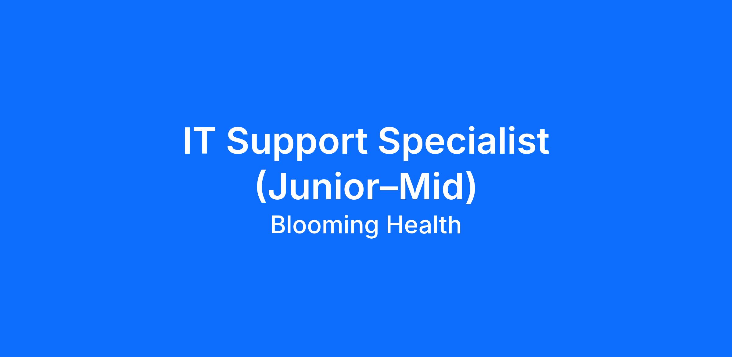We’re looking for an IT Support Specialist to support Blooming Health’s internal technology environment and assist our cybersecurity and compliance efforts. This role sits at the intersection of IT operations, security support, and employee experience, ensuring our systems are reliable, secure, and audit-ready.
