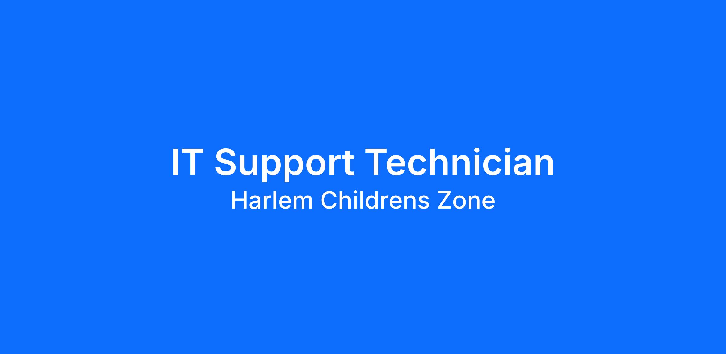 Harlem Children’s Zone (HCZ) — a world-renowned education and poverty-fighting organization based in New York — seeks an enthusiastic, dedicated, and mission aligned IT Support Specialist with our Information Technology Department.