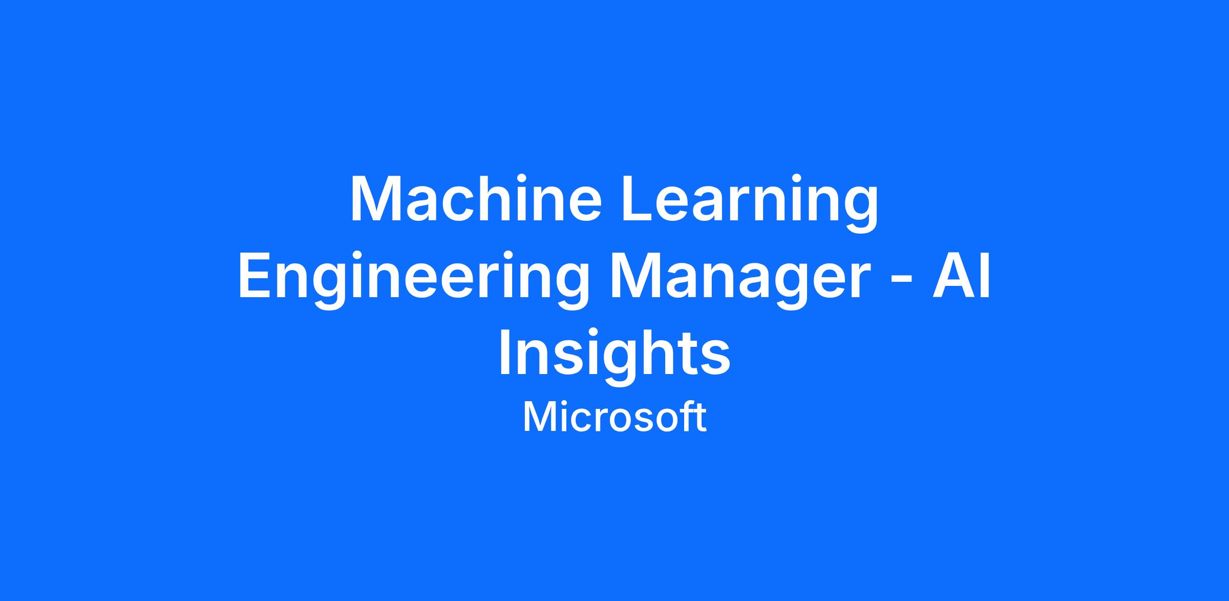 OverviewAs a Machine Learning Engineering Manager, you will work on developing AI based insights on large scale multi modal Copilot data part of the Microsoft AI (MAI) organization. We’re looking for a experienced Engineering Manager with solid hands-on skills in machine learning, data platforms, and distributed systems to lead the development of AI Insights, a next-generation Copilot analytics product. We’re looking for someone with experience leading product development leveraging data pipelines, data science, and machine learning, as well as a solid communicator and great teammate. The right candidate takes the initiative and enjoys building world-class consumer experiences and products in a fast-paced environment.