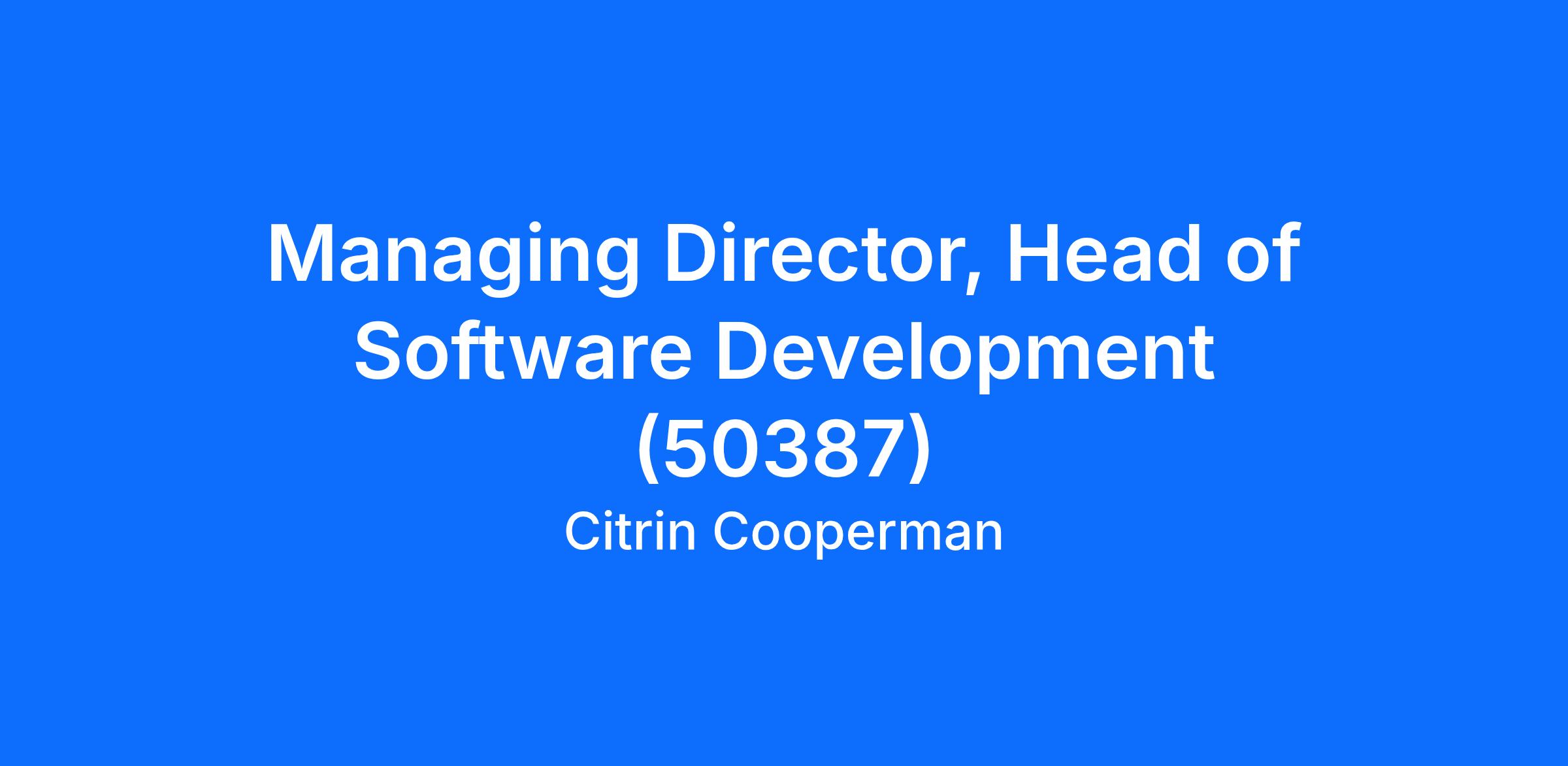We are looking for a Managing Director, Head of Software Development to join the Development team within the Information Technology (IT) department. They will lead and execute software development initiatives for the firm. They will transform development processes and capabilities for the firm.