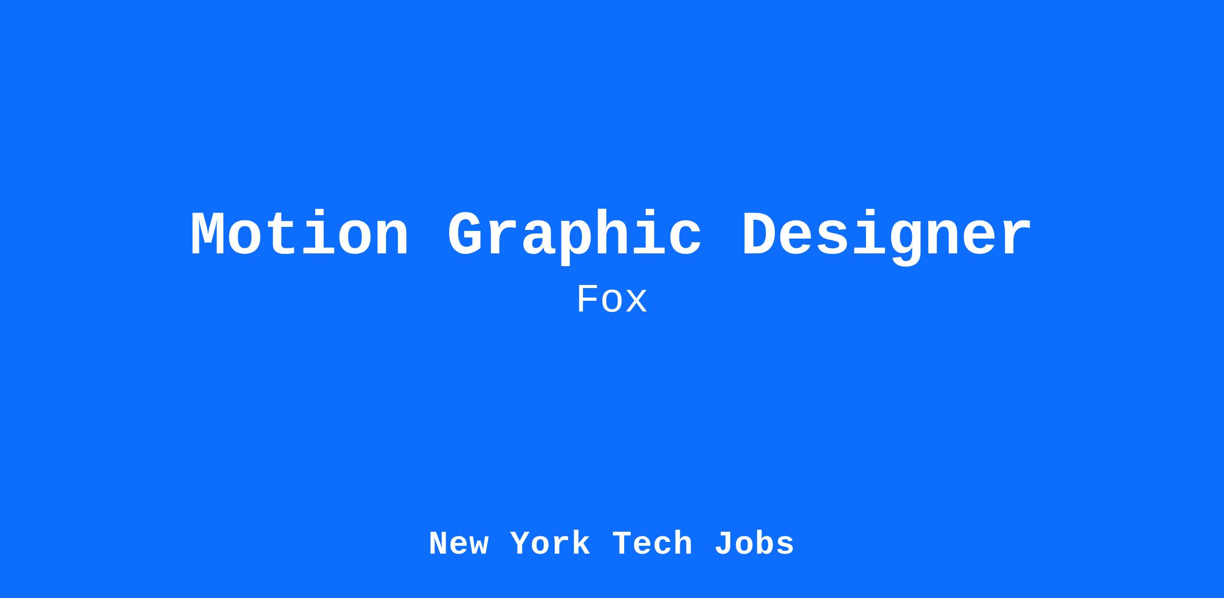 Fox News MediaFOX News Media operates the FOX News Channel (FNC), FOX Business Network (FBN), FOX News Digital, FOX News Audio, FOX News Books, the direct-to-consumer digital streaming services FOX Nation and FOX News International and the newly announced platform FOX Weather. Currently the number one network in all of cable, FNC has also been the most watched television news channel for 20 consecutive years, while FBN currently ranks among the top business channels on cable. Owned by FOX Corporation, FOX News Media reaches 200 million people each month.We have an exciting opportunity for a Motion Graphics Designer who can produce original designs and animations for programming on Fox News Channel, Fox Business, Fox Weather, and Fox Nation. The Motion Graphics Designer has a solid foundation in design principles and can own the full design process including research, original logo design, storyboarding, and execution of animations. You are highly conceptual with the ability to communicate ideas clearly and effectively.