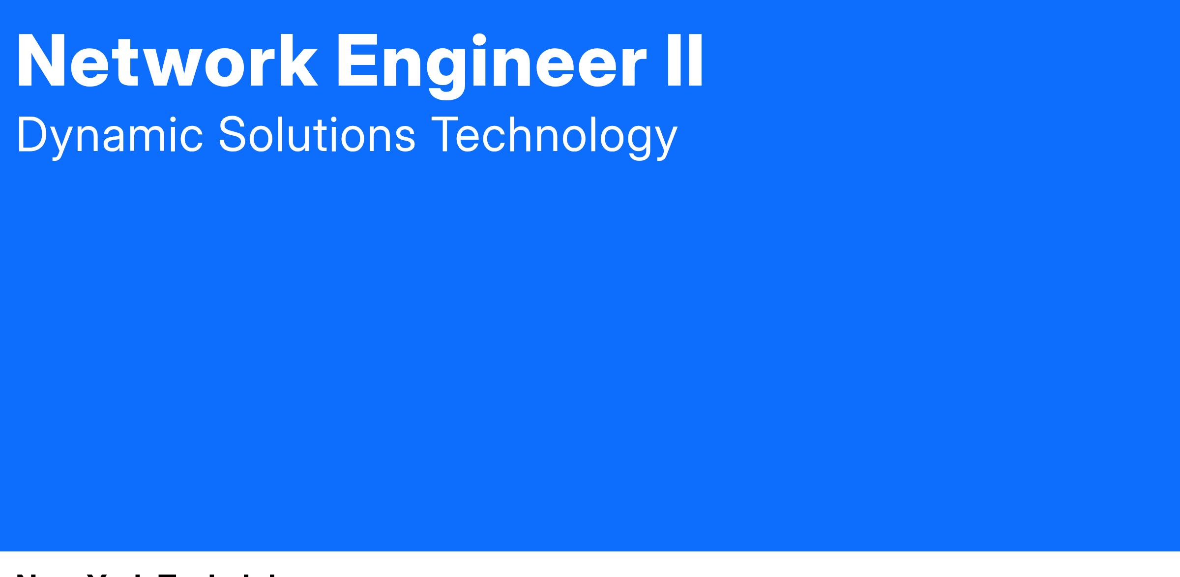 Dynamic Solutions Technology, LLC, a premier strategic services firm that meets IT and Service needs for commercial and government clients. We are is seeking a full-time Network Engineer to support contract work out of New York.