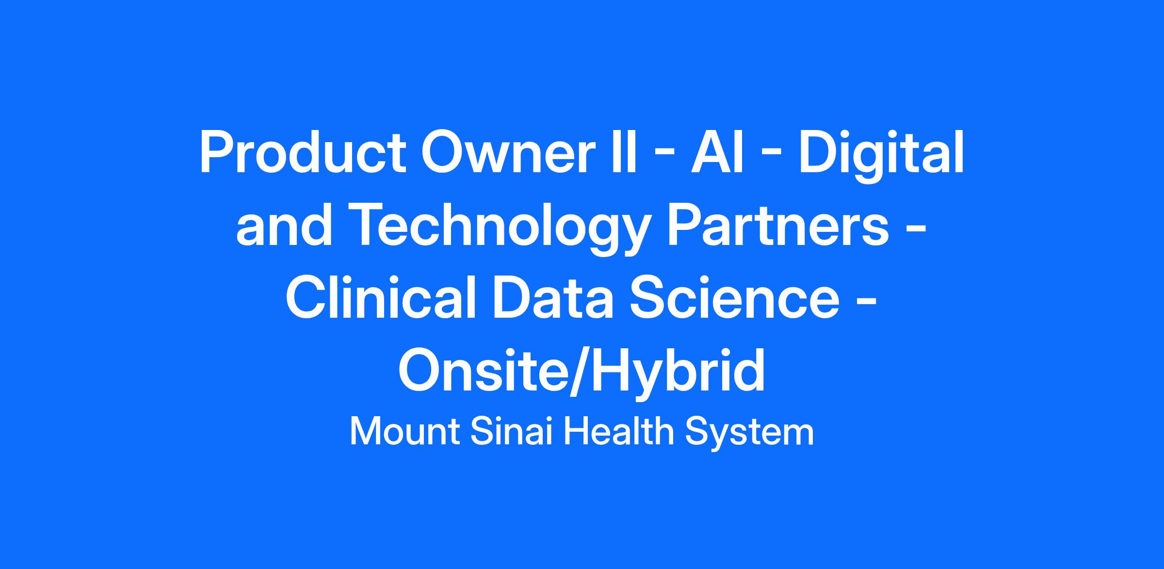 The Product Owner II is responsible for executing the strategic direction, continuous improvement, functional and technical roadmap for AI products. This role requires a deep understanding of both existing capabilities and the broader AI marketplace (commercial vendor tools, Epic-integrated features, and emerging digital and AI innovations). Product Owners work with cross functional teams to: