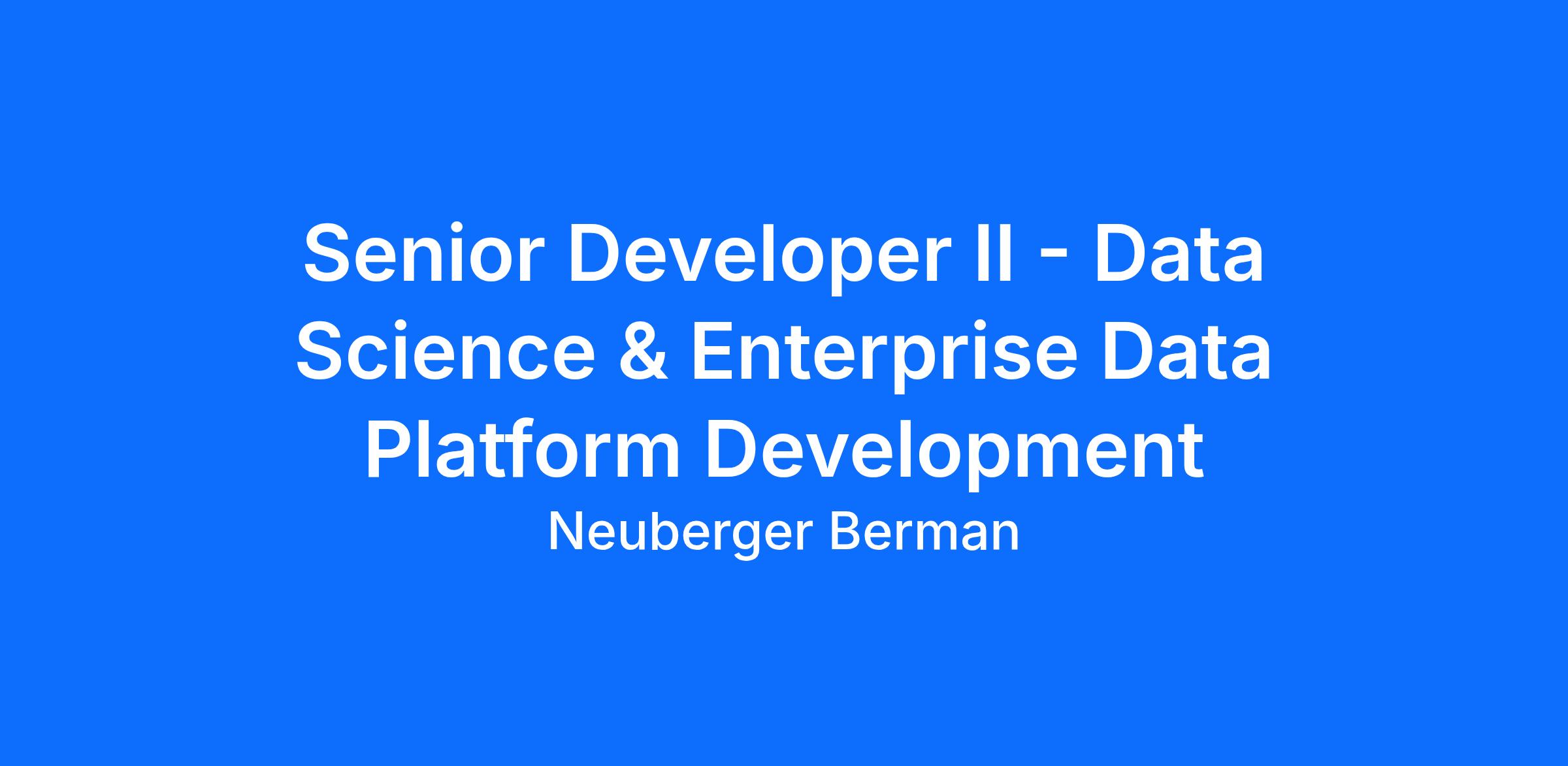 Neuberger Berman is seeking a Senior Developer II to support the firm's enterprise data platform initiatives, with a particular focus on advancing its Data Science capabilities and platform development. This individual will play a crucial role in developing, optimizing, and maintaining the firm's data platform and supporting its broader data, analytics, and machine learning vision. This is an exciting opportunity for a highly motivated and technically proficient professional to contribute to the firm's data-driven innovation, quantitative research enablement, and operational excellence.