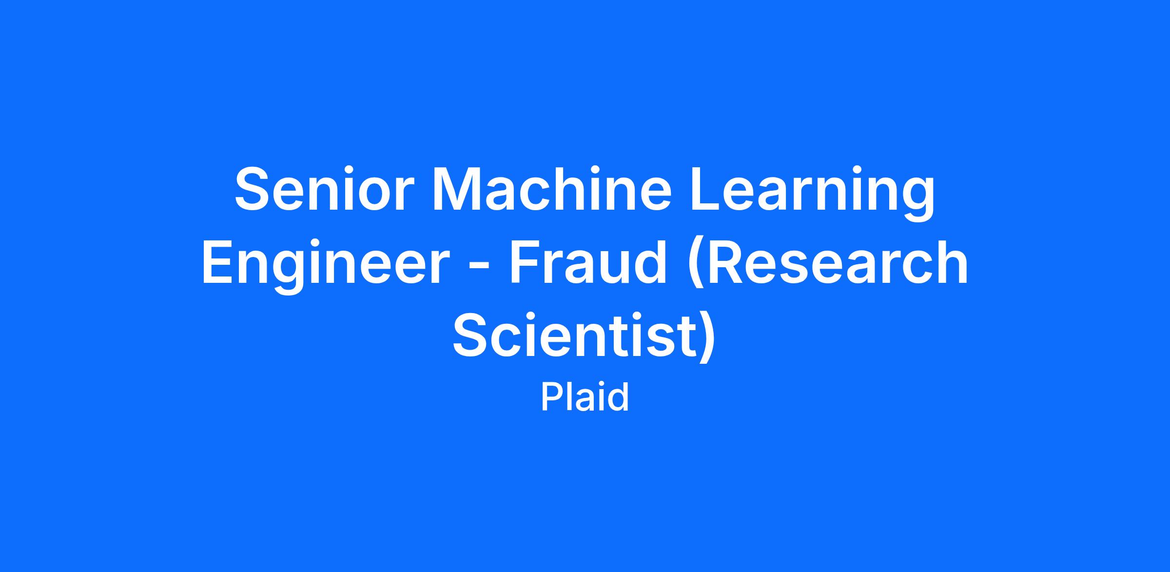 As a Senior Machine Learning Engineer (Research Scientist) on Plaid’s Fraud Data team, you will design and build scalable ML infrastructure that powers our industry-leading fraud detection product. You’ll lead the evolution of our model deployment, monitoring, and observability frameworks to ensure high reliability and performance at scale. Collaborating closely with teams across ML Infrastructure, Product, and Engineering, you’ll deliver robust systems that protect users and customers from fraud. In addition, you’ll mentor other engineers and help shape the long-term technical vision and strategy of the Fraud Data team.