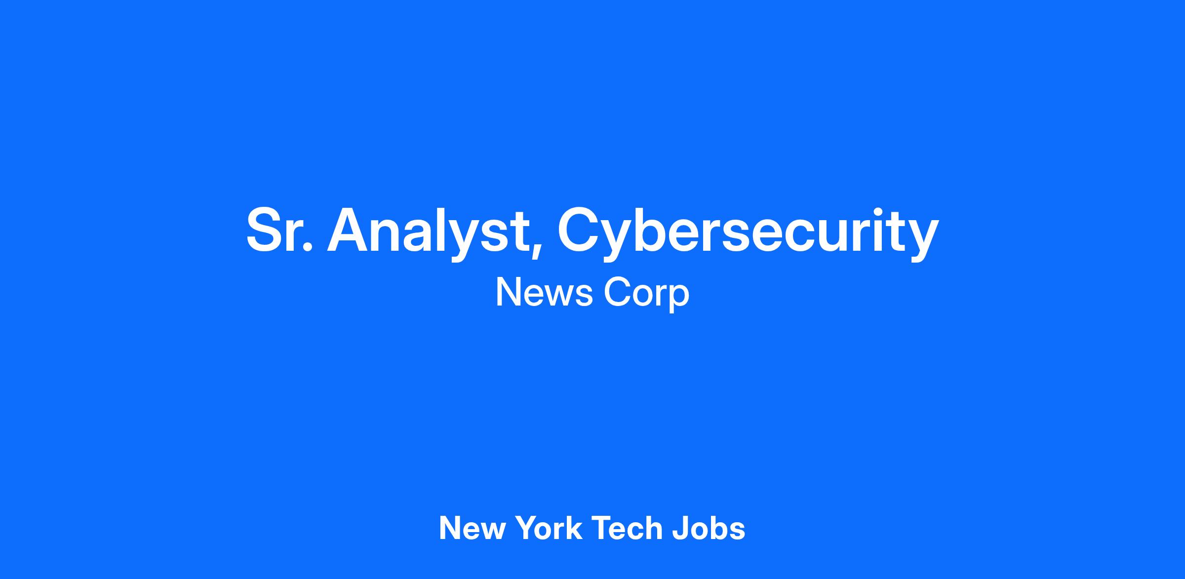 As a global media and information services company, News Corp understands the importance of cybersecurity and mitigating risk across the organization. We believe in protecting our businesses and customers and are looking to build innovative solutions that will allow us to become a global leader in cybersecurity. If cybersecurity is your passion and you want to be part of a cutting edge team, we want to hear from you!