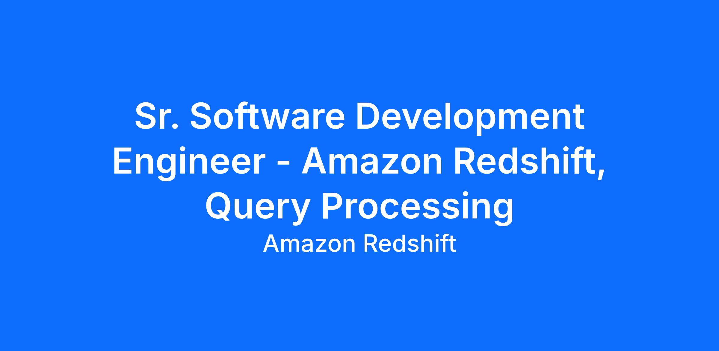 We are actively hiring a talented Senior Software Engineer in the Query Processing team of Redshift. Query processing is at the heart of Redshift data plane and is responsible for the massive parallel execution engine.