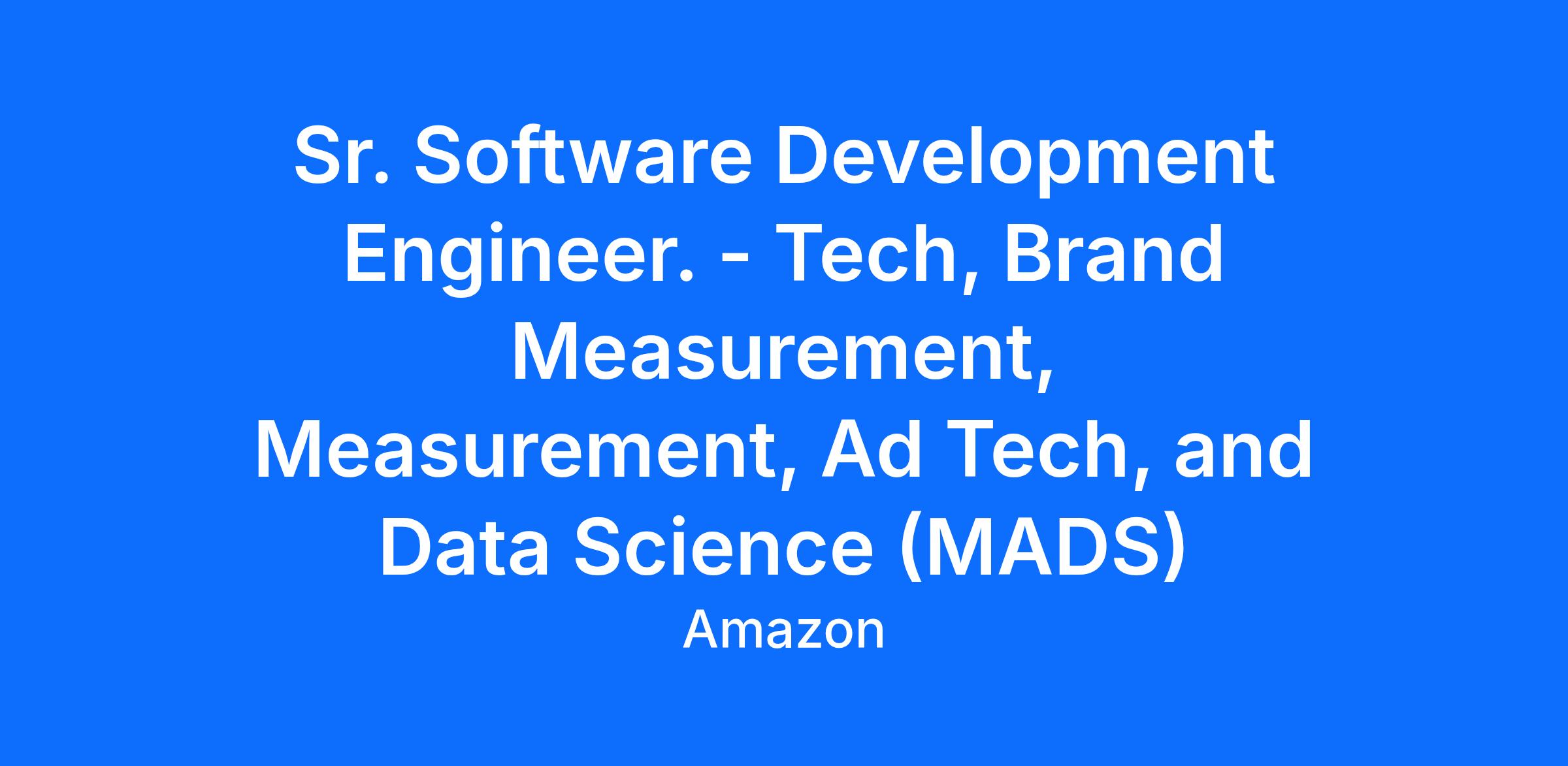 We are seeking an experienced, customer-focused Sr. Software Development Engineer to lead the development of innovative solutions in brand measurement. This role will play a pivotal part in helping advertisers measure, analyze, and optimize their brand-building campaigns across Amazon Ads. By delivering performance reporting and actionable AI driven insights, our team empowers global advertisers to connect their media investments with real customer outcomes. If youβre passionate about data-driven decision-making and developing solutions that impact millions of customers, this is the role for you!
