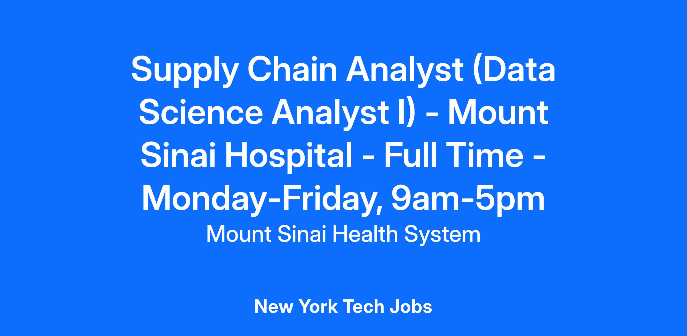 The Supply Chain Analyst (Data Science Analyst I) collaborates with stakeholders from across the organization to develop sophisticated analytics to provide information, insights and BI (Business Intelligence) solutions that contribute to sound strategic planning, decision-making, goal setting, and effective performance measurement. This individual demonstrates sound understanding of the healthcare domain, technical data manipulation and analytic development skills and impact the patient community of the Mount Sinai Health System.