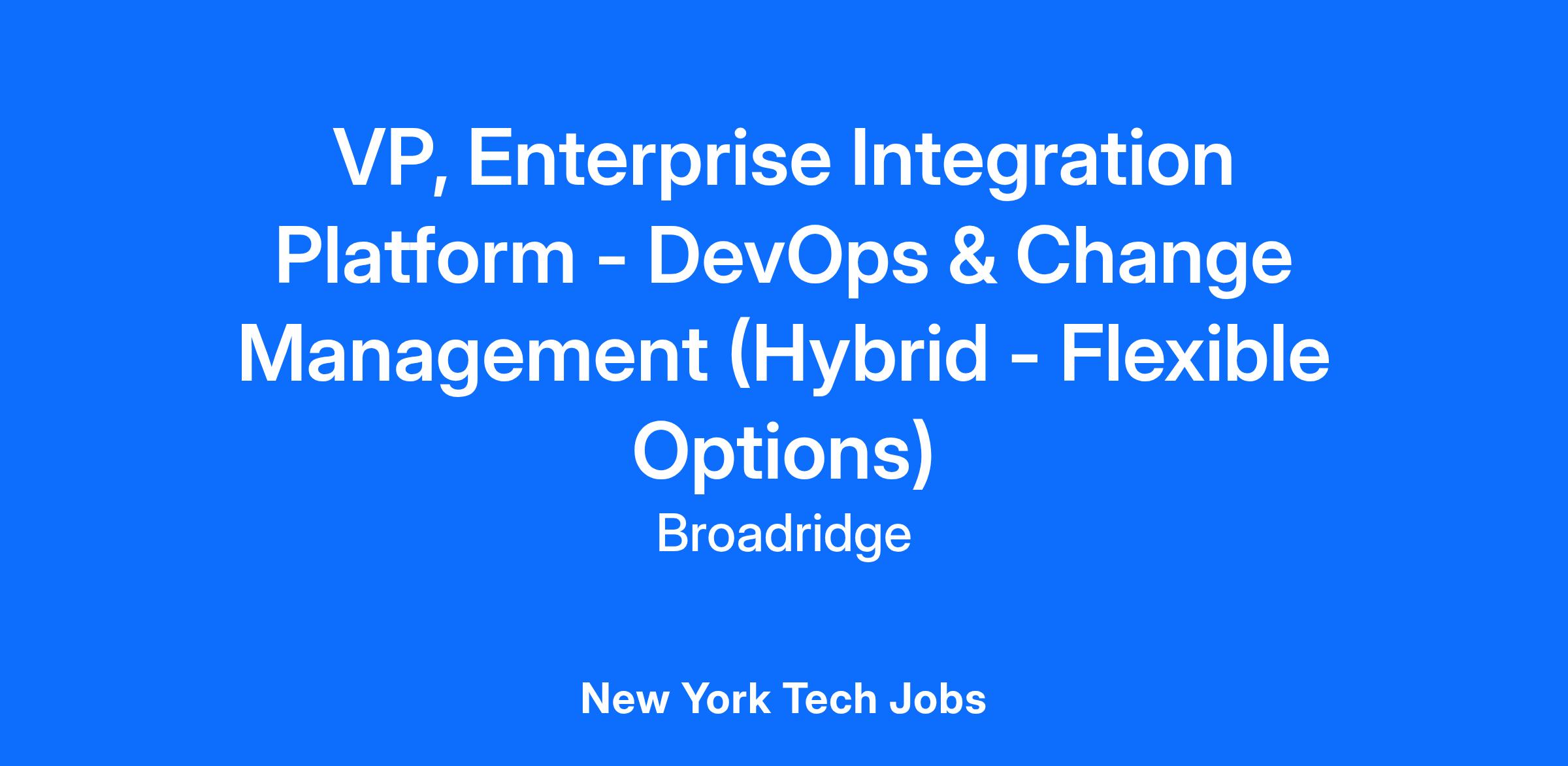 The VP, Enterprise Integration Platform - DevOps and Change Management is responsible for leading the organization’s DevOps strategy and ensuring seamless integration of development, operations, and change management processes. This role combines technical leadership with strategic oversight to ensure secure, scalable, and resilient delivery of technology solutions while maintaining governance and operational efficiency.